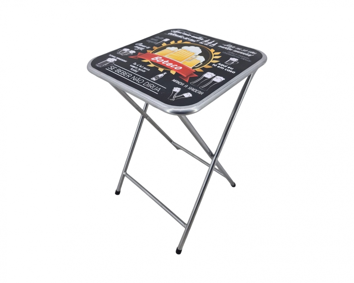 A Mesa Petisqueira da Utilaço, chega ao mercado para facilitar os seus momentos de lazer, pois ela valoriza a necessidade de cada ambiente assumindo carater funcional e estético ao mesmo tempo. Produzida em aço carbono com pintura epóxi, tampo dobrável otimizando o seu espaço. o seu adeviso de Boteco, possui frases engraçadas para descontrair os momentos com seus amigos e familiares.