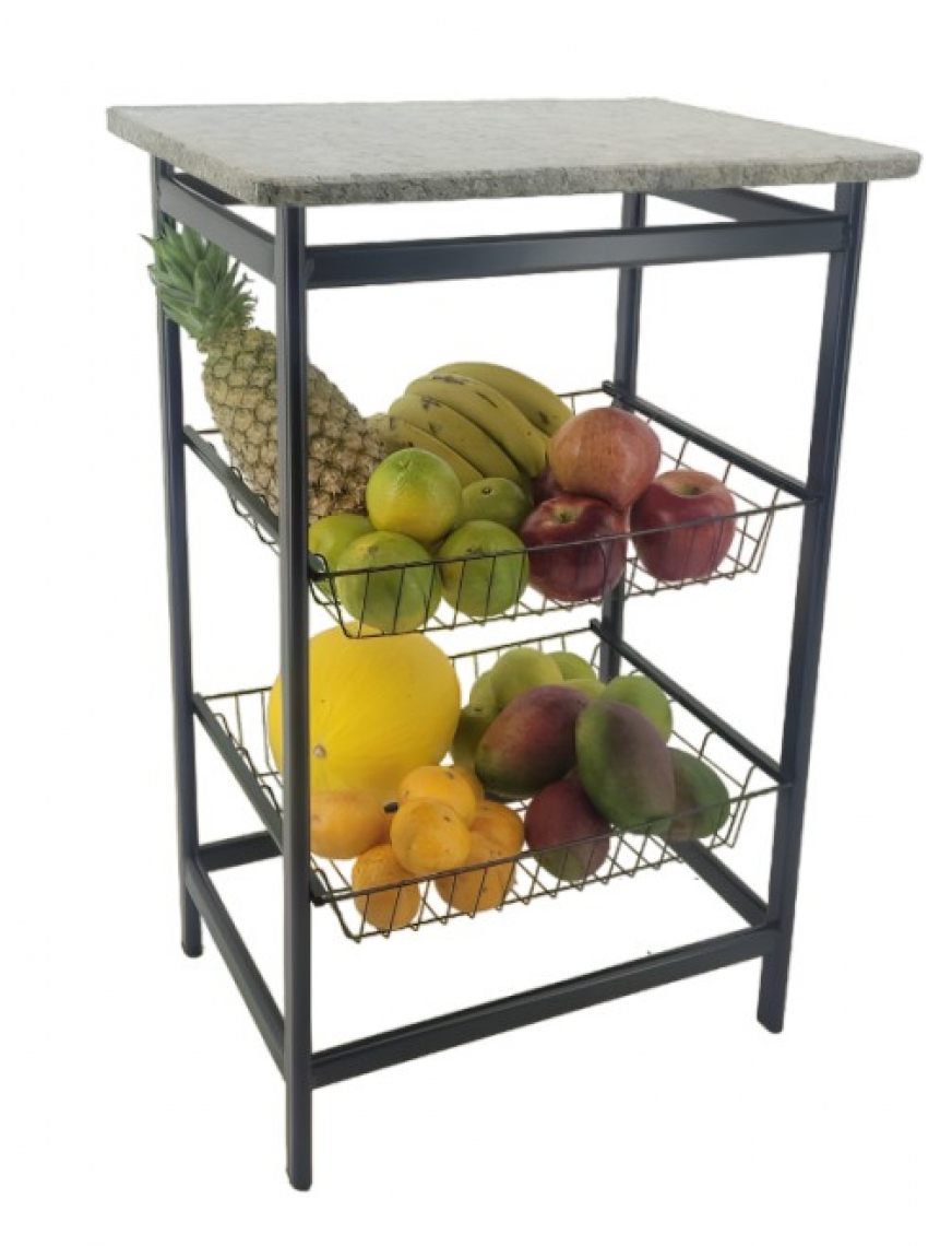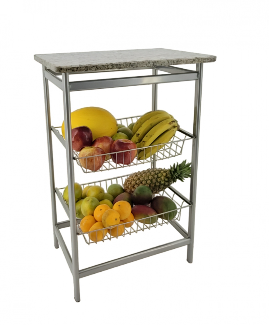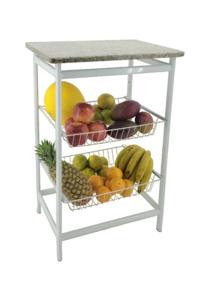 A FRUTEIRÃO EXTRA PREMIUM FIXA com Tampo de Granito da Utilaço é fabricada em aço de alta qualidade, tubo obilongo 30x16, garantindo robustez e o máximo de resistência à estrutura da peça, tornando seu tempo de vida útil mais elevado. Sua pintura, em tinta epóxi, proporciona ainda mais proteção a ela. Esta funcional fruteira possui 2 cestos perfeitos para armazenar frutas e legumes, e ainda conta com espaço livre em cima que pode ser usado de diveras formas.